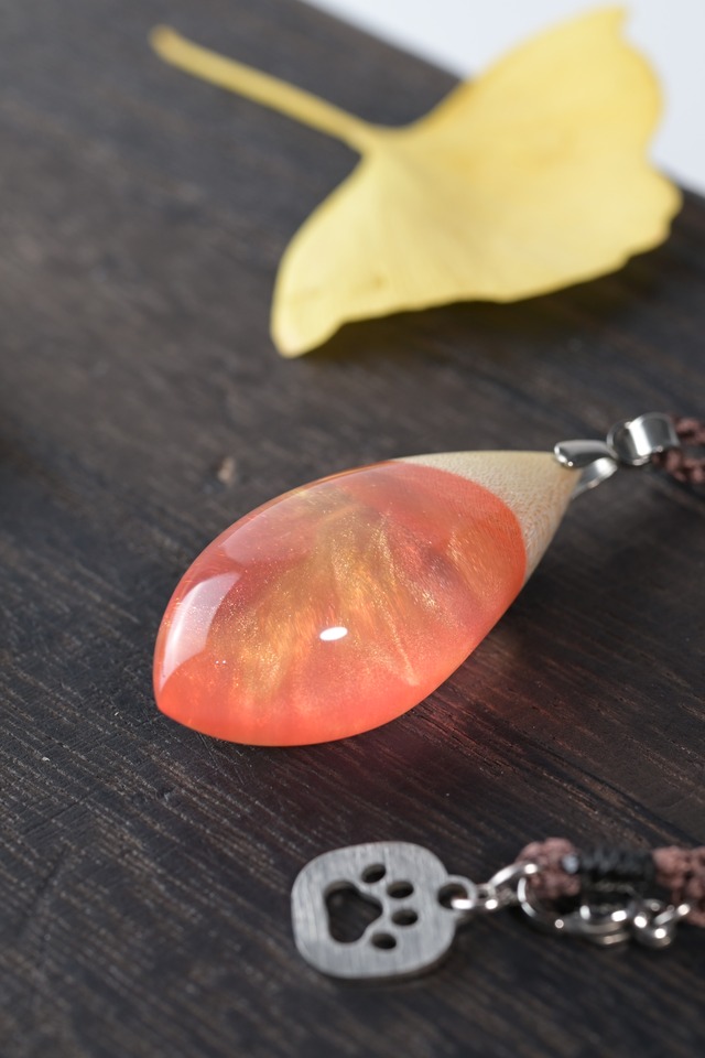 【作品イメージ】 色づき始めた景色を閉じ込めました。 すっかり葉が落ちていく季節になりましたね。 紅葉を楽しむにはもうあまり時間がありませんが 景色を楽しむお供にしていただけると嬉しいですね。 【使用レジン】 レジンは2液レジン(エポキシレジン)を使用しています。 木材に染み込んだレジン液も硬化しており、使用時に滲み出て衣服を汚したり、肌に付着する心配はありません。 レジンは性質上、変色(黄変)してしまいます。 使用しているレジンは変色の進行が非常に遅いものを使用していますので 長く透明感を楽しんでいただけます。 【使用木材】 楓瘤 【カラー区分】 赤 【木の仕上げ方法】 浸透性の高級セラミックオイルで仕上げています。 ・汗や水は染み込みません ・木の温もりある肌触りはそのままです ・木の強度アップ ・オイルの再塗布不要 【絹紐】 絹紐を使用しています。 上質で柔らかく、ほのかな艶は高級感があります。 使用後は固く絞ったタオルなどで汚れを拭き取り 直射日光を避けて保管してください。 【肉球チャーム】 全てのアクセサリーには当店オリジナルの肉球のマークが入ったチャームが付いています。 ねこの幸福屋の作品の証明でもあり、さりげなく猫好きをアピールすることもできます。 【チェーン】 ステンレスを使用しています。 錆びにくく金属アレルギーの可能性は低いですが、異常を感じた場合は使用をやめてください。 使用後は固く絞ったタオルなどで汚れを拭き取り 直射日光を避けて保管してください。 【使用金属パーツ】 ステンレスを使用しています。 錆びにくく金属アレルギーの少ないですが、異常を感じた場合は使用をやめてください。 【保存方法】 レジンや絹紐が変色・変形しますので、直射日光を避けて高温になりすぎないところで 保管してください。 【各サイズ】 縦 約4cm 横 約2cm 奥行 約1.4cm 絹紐 約1.5mm×50cm ステンレスチェーン 約1.5mm×50cm(45cm+5cmアジャスター) ペンダントトップがだいたい胸の位置より少し上にきます。 【包装】 高級紙で作られた専用の箱でお届けします。 ロゴは箔押しで特別感があり、保管や贈り物としてもそのままご使用いただけます。 【発送方法】 クリックポスト、宅急便コンパクトが選択できます。 アクセサリーを3個以上ご購入の場合は宅急便コンパクトへ切り替えますのでご了承ください。 【お問い合わせ】 不具合や気になる点がありましたら、お問い合わせやX・Instagramでご連絡ください。 #ウッドレジン #ウッド #レジン #レジンアクセサリー #ネックレス #アクセサリー #ペンダント #木のネックレス #木のアクセサリー #ステンレス #プレゼント #ご褒美 #記念日 #シンプル #猫