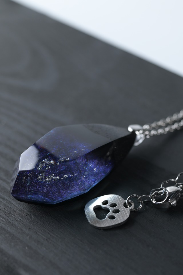 【作品イメージ】 ギベオン隕石を封入した作品。 4億5千万年前にアフリカ・ナミビアに落下したとされている隕石。 鉄やニッケルの塊で、断面は独特な模様が見られるのが特徴。 45億年前に作られた隕石を封入しています。 そのころ地球はどんなだったんでしょうね。 ロマンを感じずにはいられない作品に仕上がりました。 【使用レジン】 レジンは2液レジン(エポキシレジン)を使用しています。 木材に染み込んだレジン液も硬化しており、使用時に滲み出て衣服を汚したり、肌に付着する心配はありません。 レジンは性質上、変色(黄変)してしまいます。 使用しているレジンは変色の進行が非常に遅いものを使用していますので 長く透明感を楽しんでいただけます。 【使用木材】 黒壇(こくたん) 非常に硬く、重いため水に沈む木材。 【カラー区分】 青 【木の仕上げ方法】 浸透性の高級セラミックオイルで仕上げています。 ・汗や水は染み込みません ・木の温もりある肌触りはそのままです ・木の強度アップ ・オイルの再塗布不要 【絹紐】 絹紐を使用しています。 上質で柔らかく、ほのかな艶は高級感があります。 使用後は固く絞ったタオルなどで汚れを拭き取り 直射日光を避けて保管してください。 【肉球チャーム】 全てのアクセサリーには当店オリジナルの肉球のマークが入ったチャームが付いています。 ねこの幸福屋の作品の証明でもあり、さりげなく猫好きをアピールすることもできます。 【チェーン】 ステンレスを使用しています。 錆びにくく金属アレルギーの可能性は低いですが、異常を感じた場合は使用をやめてください。 使用後は固く絞ったタオルなどで汚れを拭き取り 直射日光を避けて保管してください。 【使用金属パーツ】 ステンレスを使用しています。 錆びにくく金属アレルギーの少ないですが、異常を感じた場合は使用をやめてください。 【保存方法】 レジンや絹紐が変色・変形しますので、直射日光を避けて高温になりすぎないところで 保管してください。 【各サイズ】 縦 約4cm 横 約2cm 奥行 約1.4cm 絹紐 約1.5mm×50cm ステンレスチェーン 約1.5mm×50cm(45cm+5cmアジャスター) ペンダントトップがだいたい胸の位置より少し上にきます。 【包装】 高級紙で作られた専用の箱でお届けします。 ロゴは箔押しで特別感があり、保管や贈り物としてもそのままご使用いただけます。 【発送方法】 クリックポスト、宅急便コンパクトが選択できます。 アクセサリーを3個以上ご購入の場合は宅急便コンパクトへ切り替えますのでご了承ください。 【お問い合わせ】 不具合や気になる点がありましたら、お問い合わせやX・Instagramでご連絡ください。 #ウッドレジン #ウッド #レジン #レジンアクセサリー #ネックレス #アクセサリー #ペンダント #木のネックレス #木のアクセサリー #ステンレス #プレゼント #ご褒美 #記念日 #シンプル #猫