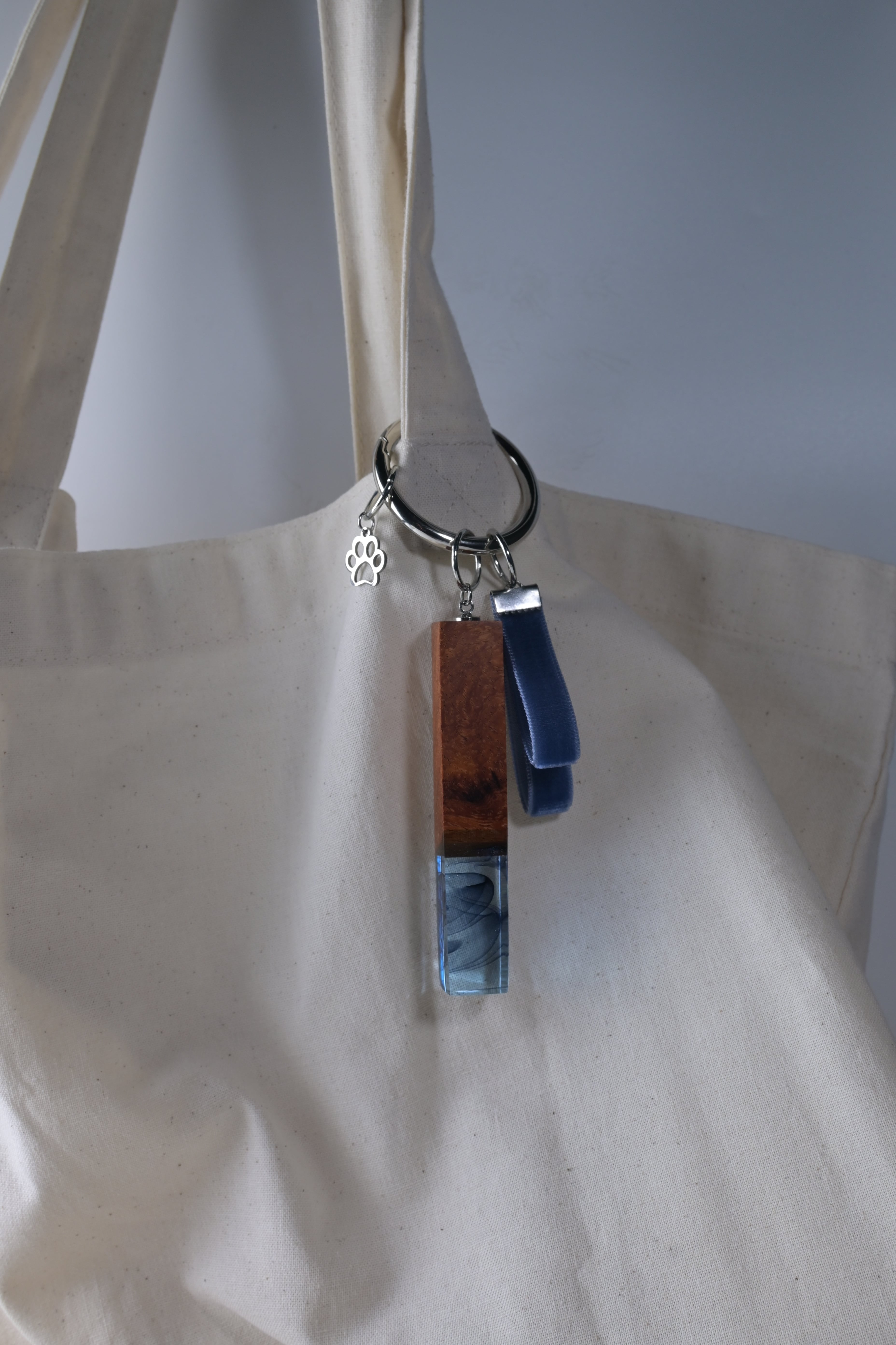 木とレジンを使い、猫の尻尾をイメージしたバッグチャームです。