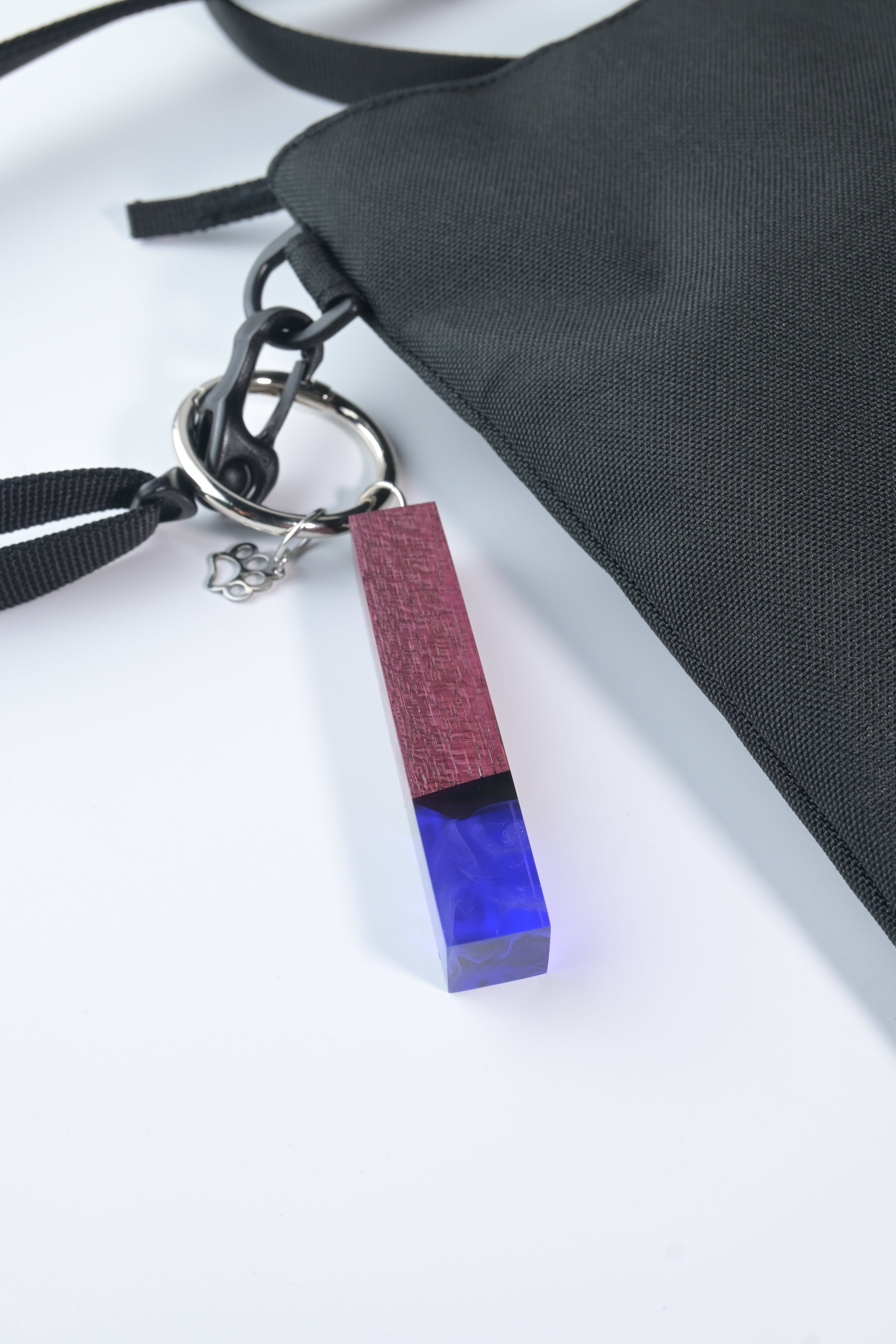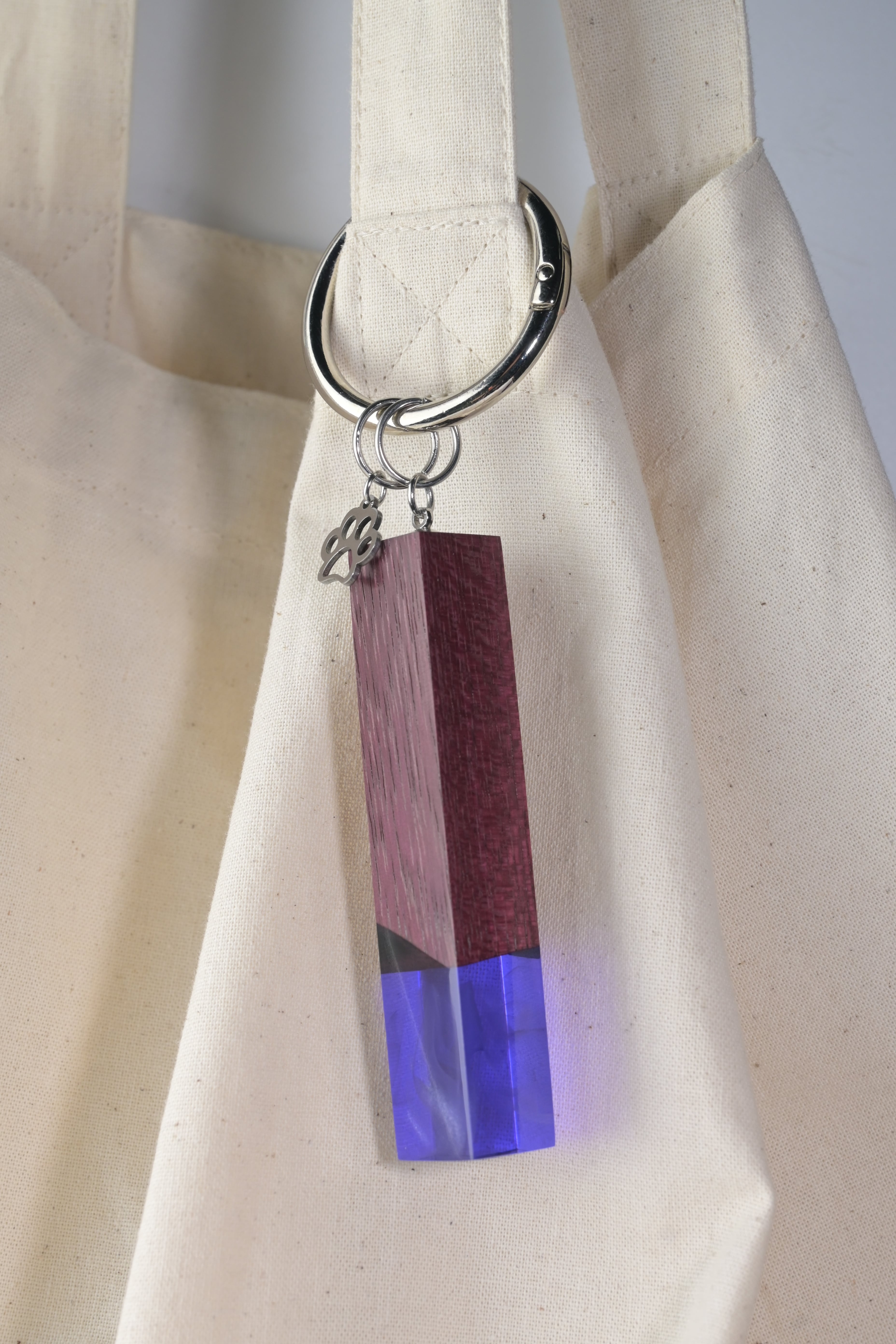 木とレジンを使い、猫の尻尾をイメージしたバッグチャームです
