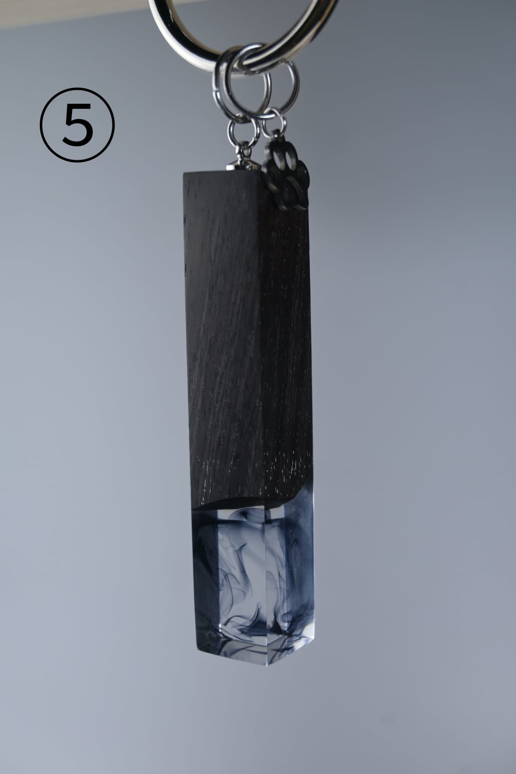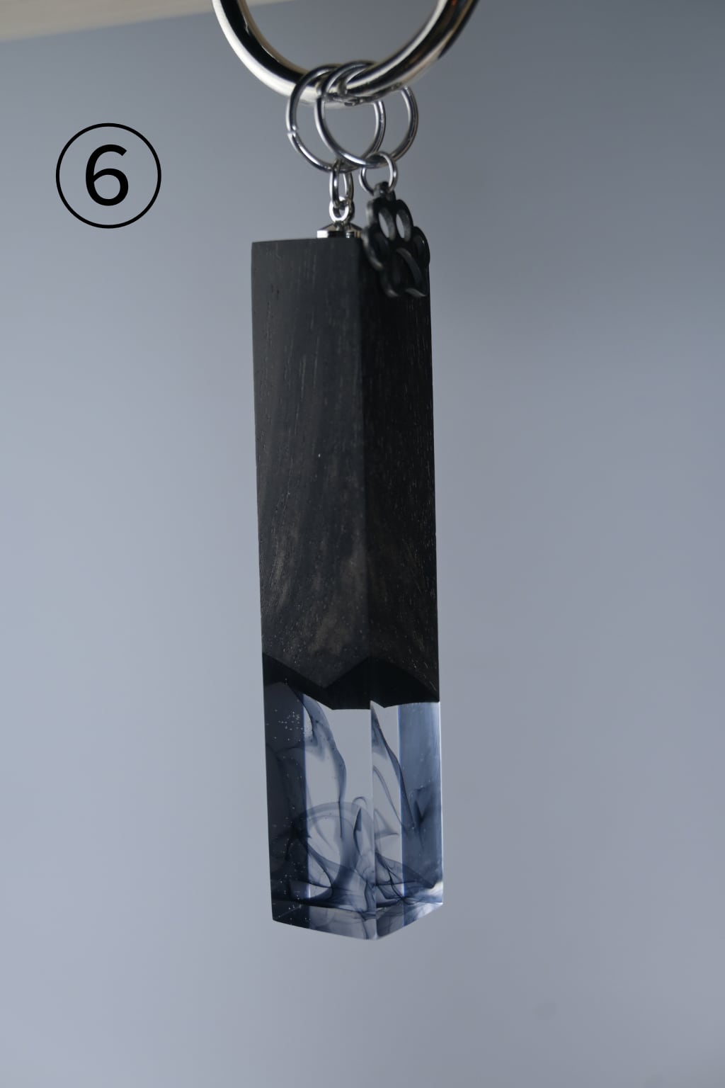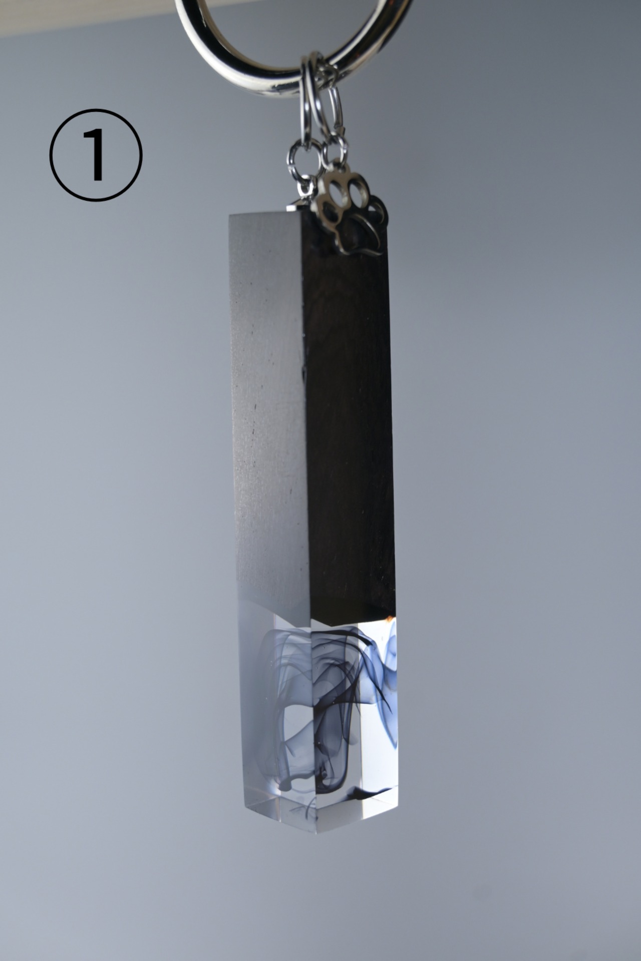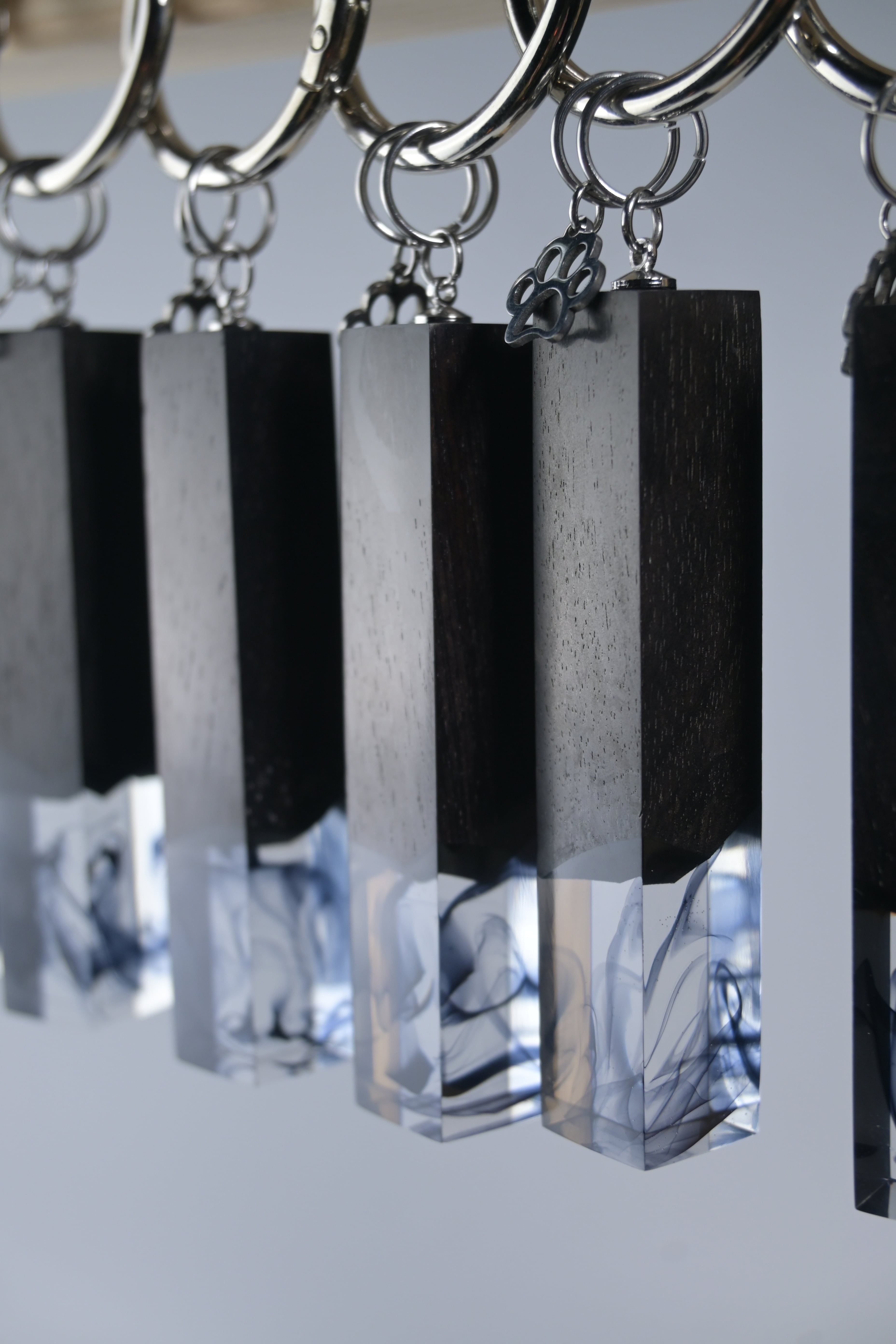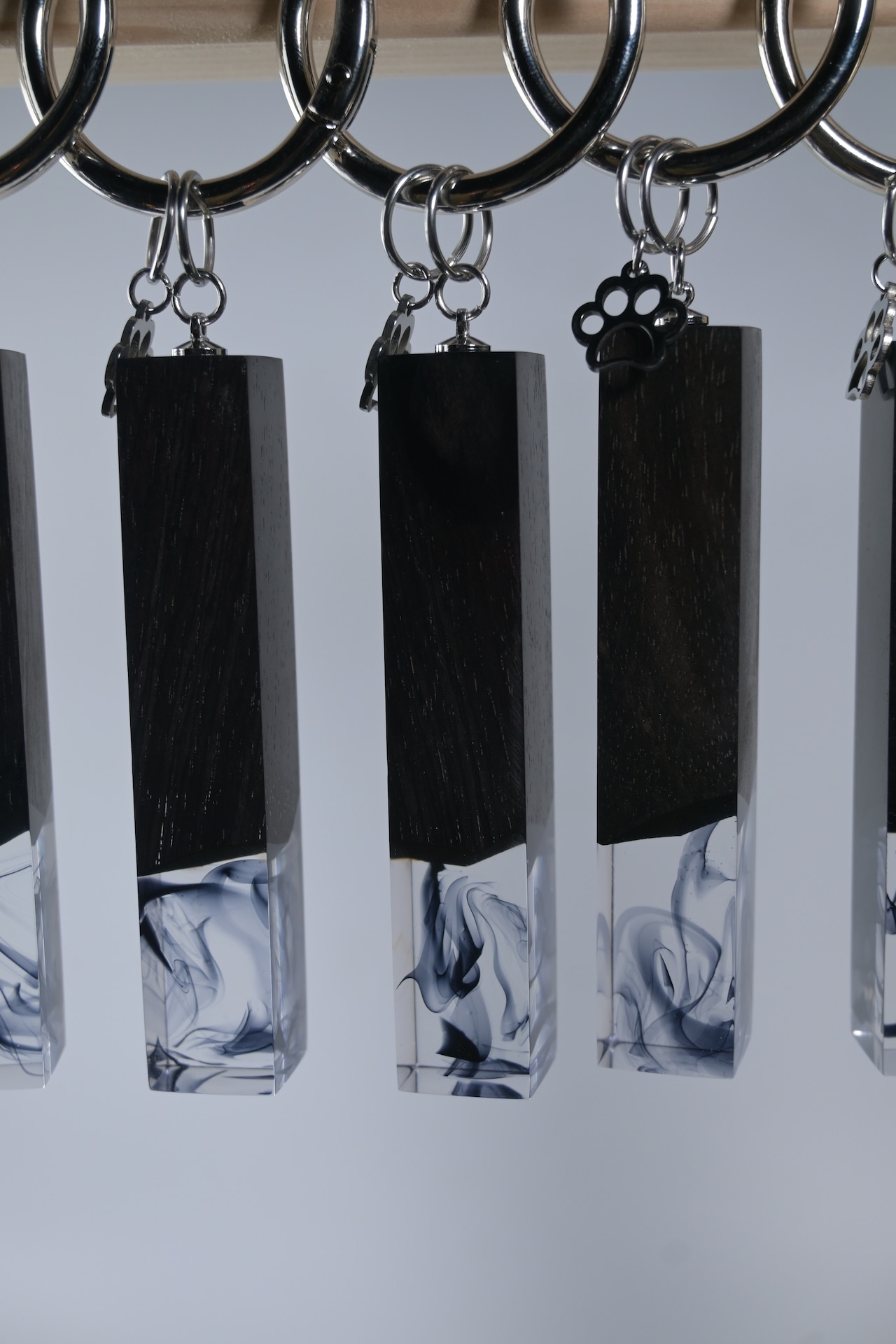 木とレジンを使い、猫の尻尾をイメージしたバッグチャームです