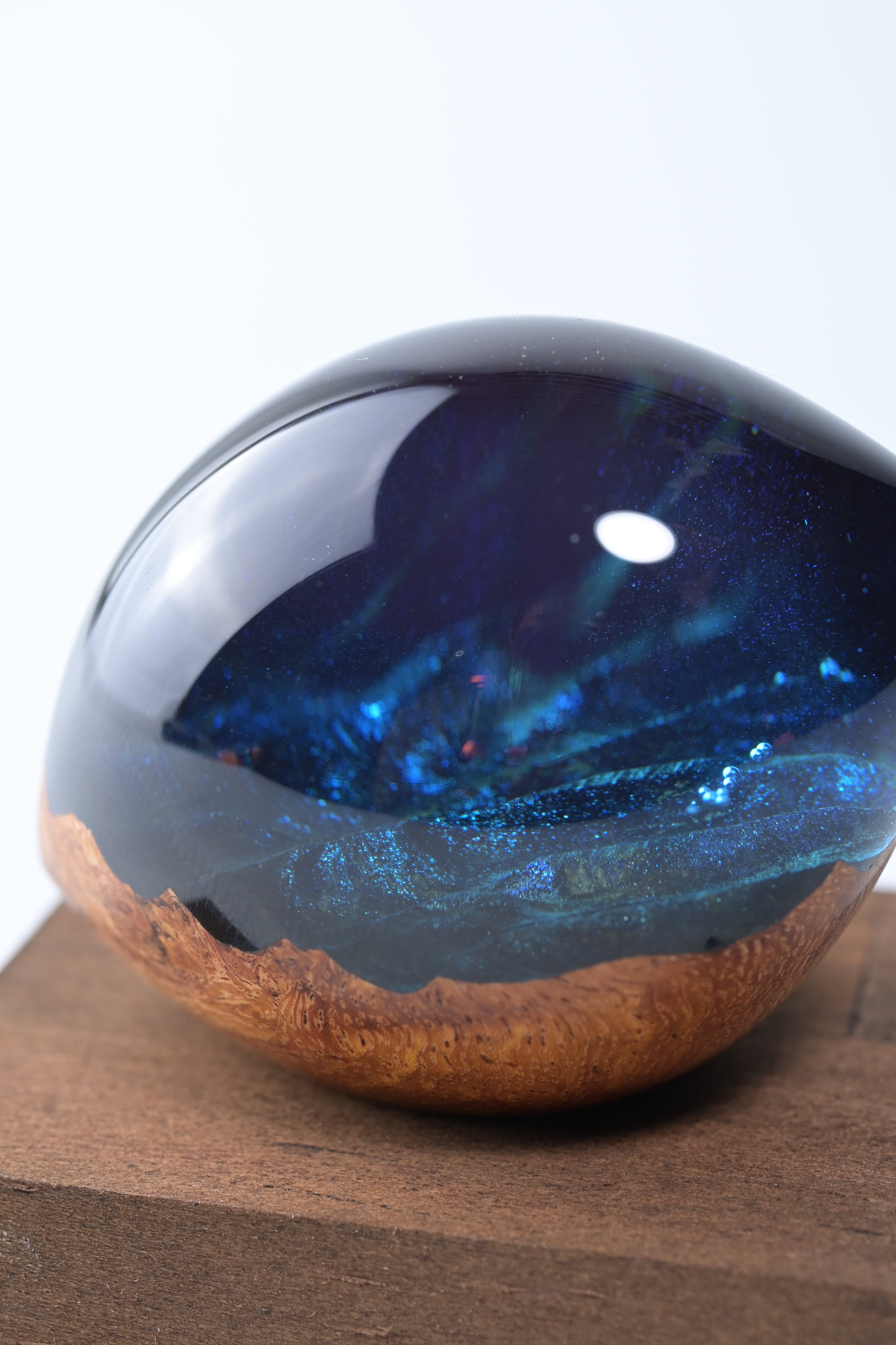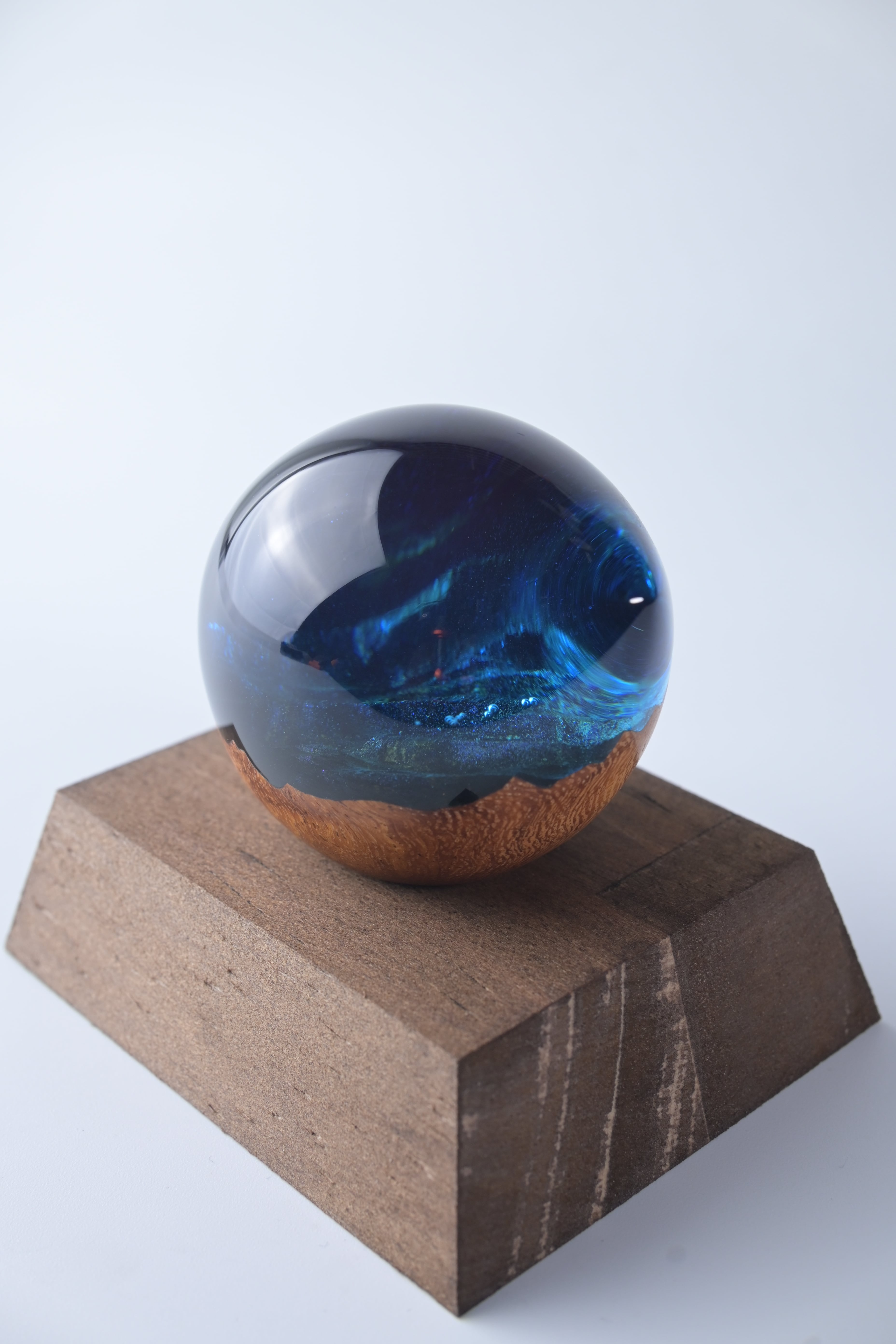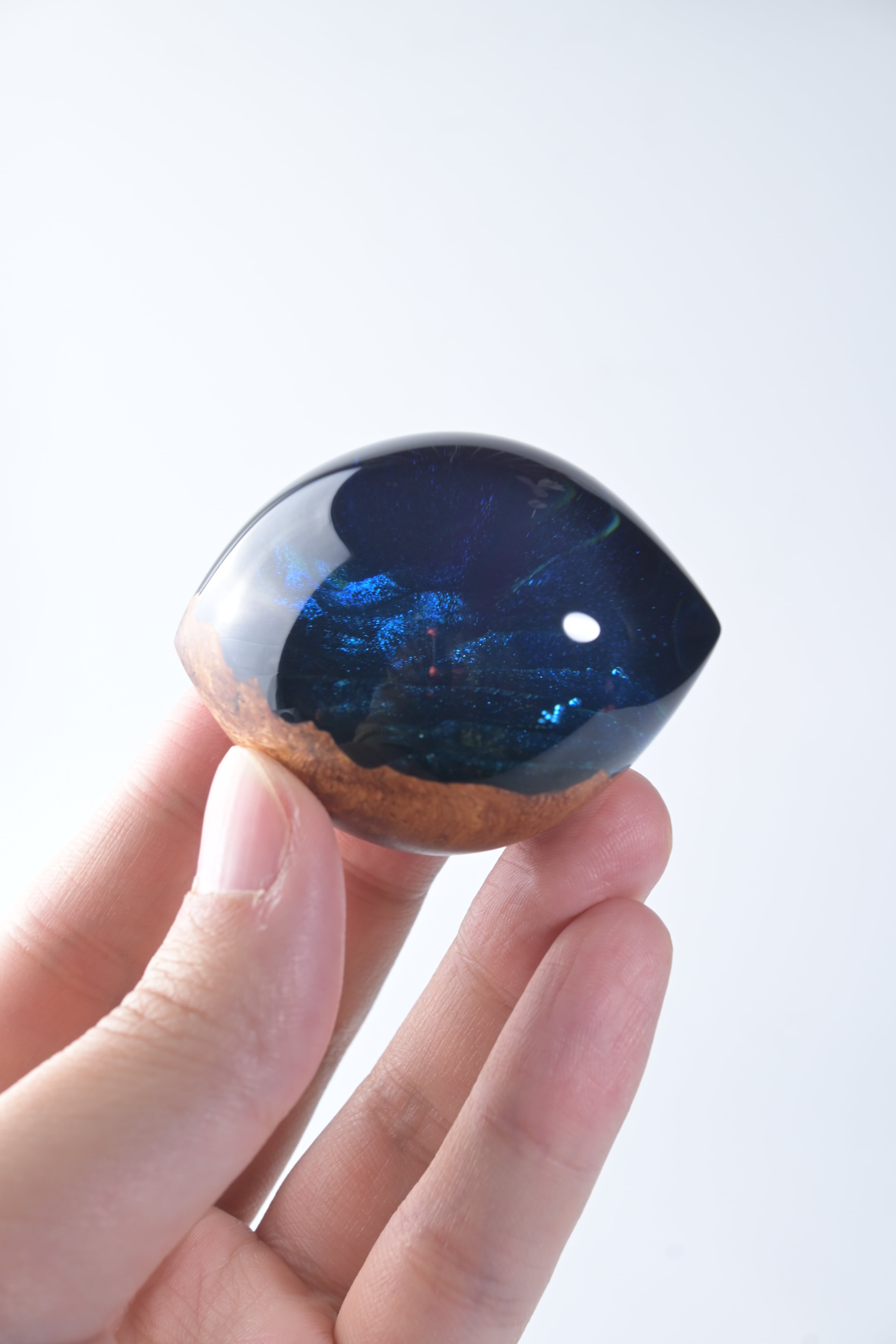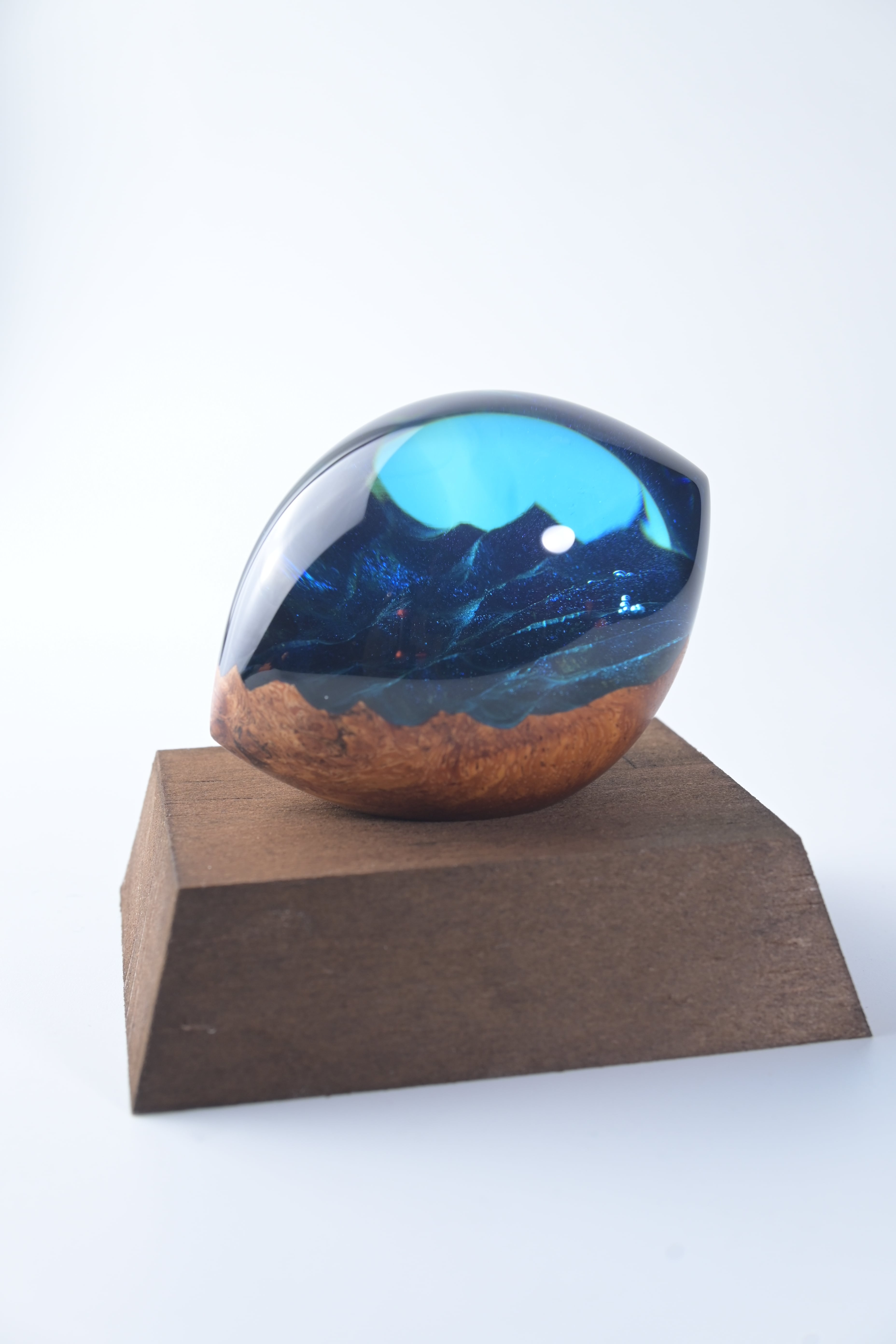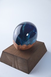 木とレジンで猫の瞳をイメージした作品。