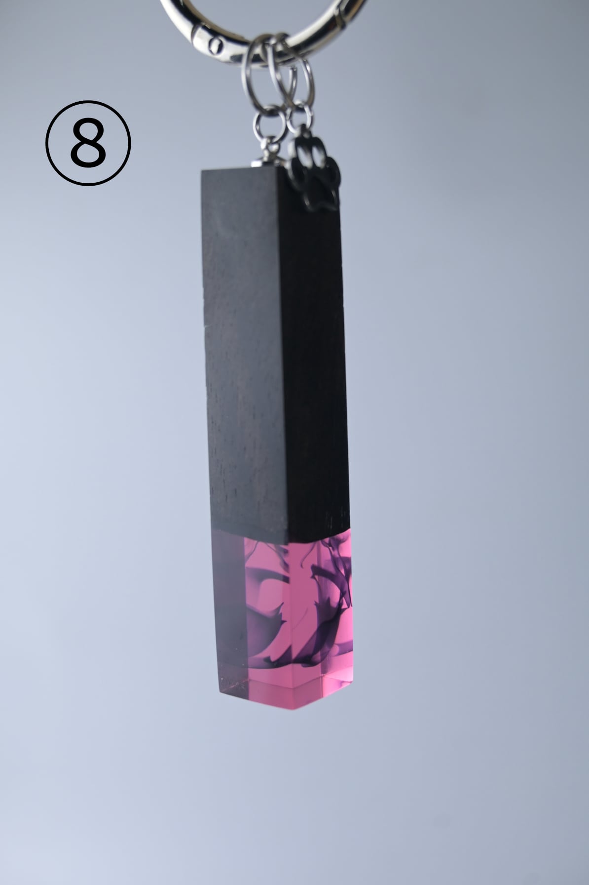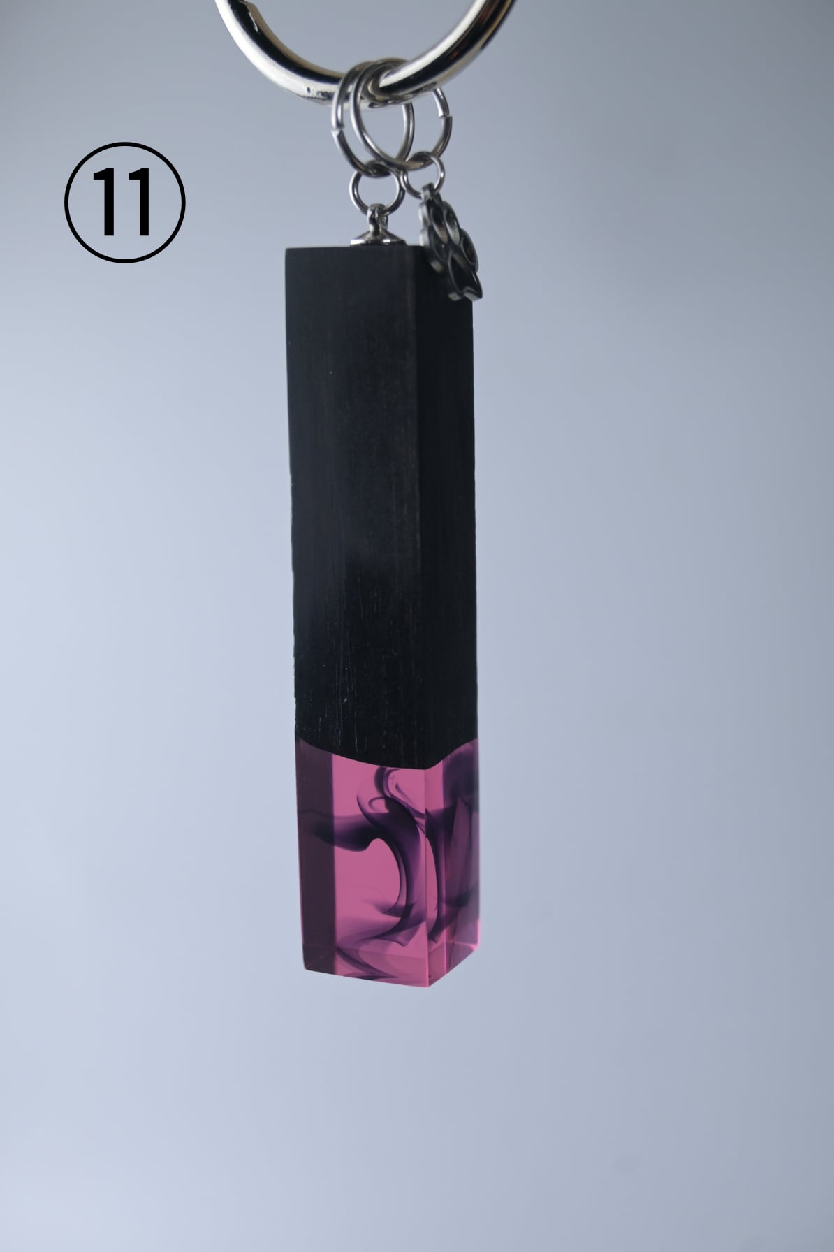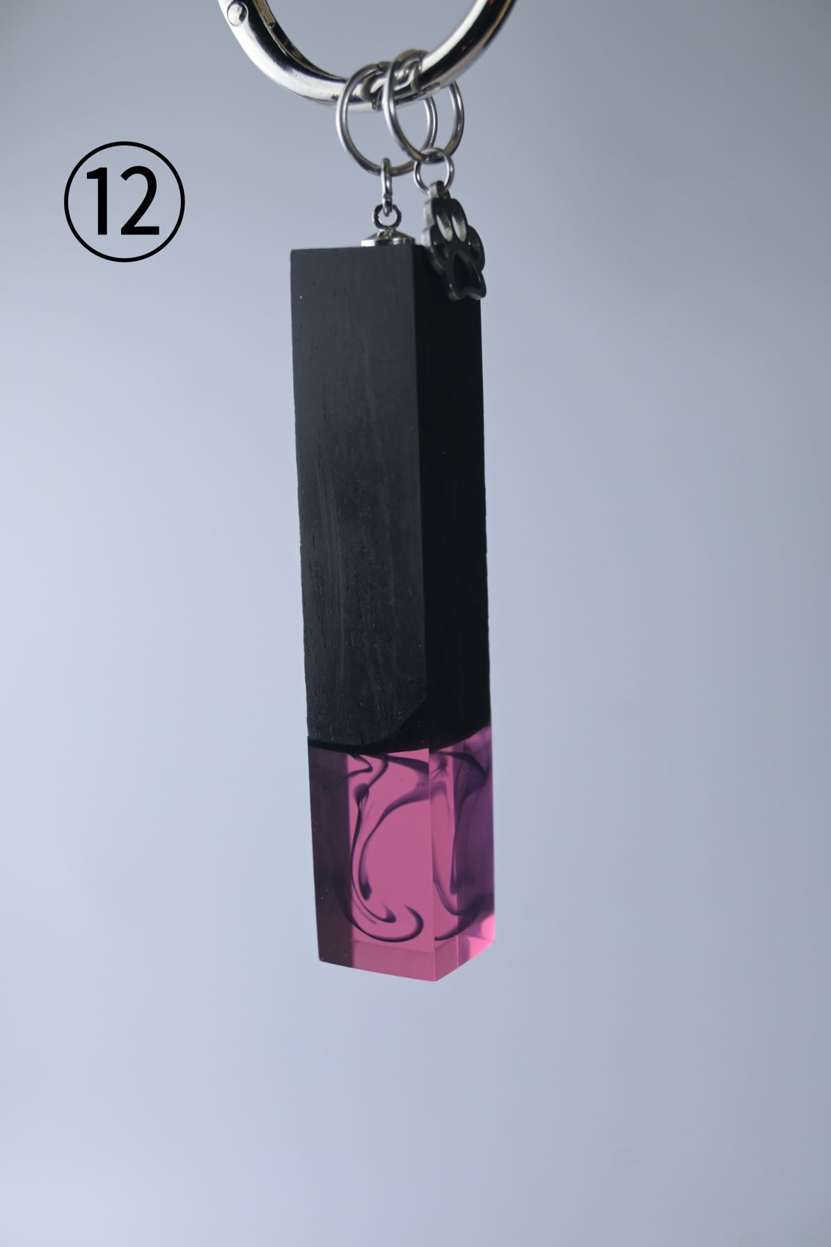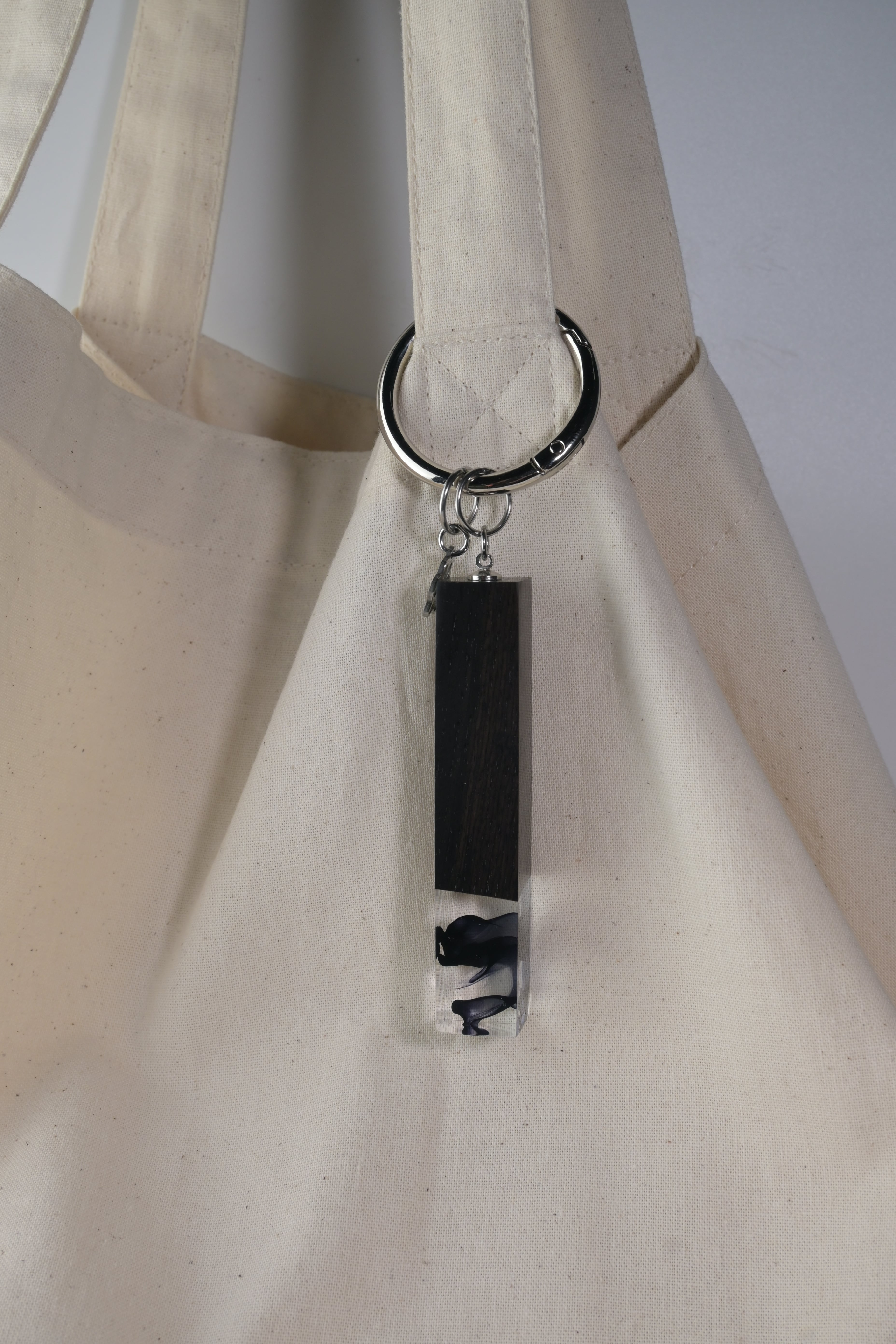 木とレジンを使い、猫の尻尾をイメージしたバッグチャームです