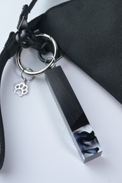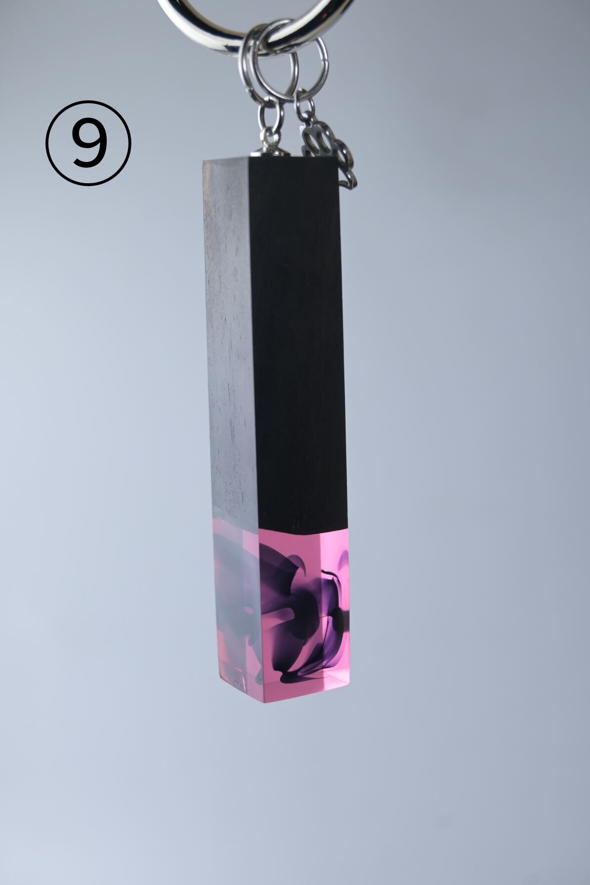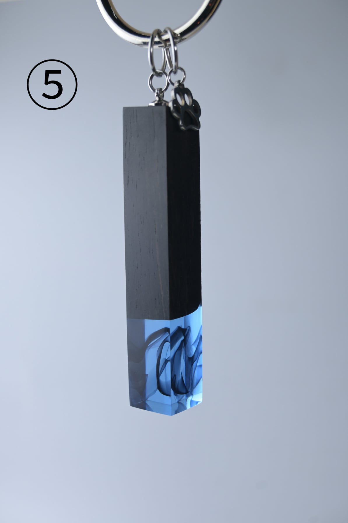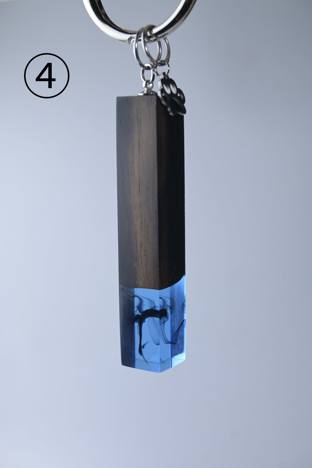 木とレジンを使い、猫の尻尾をイメージしたバッグチャームです
