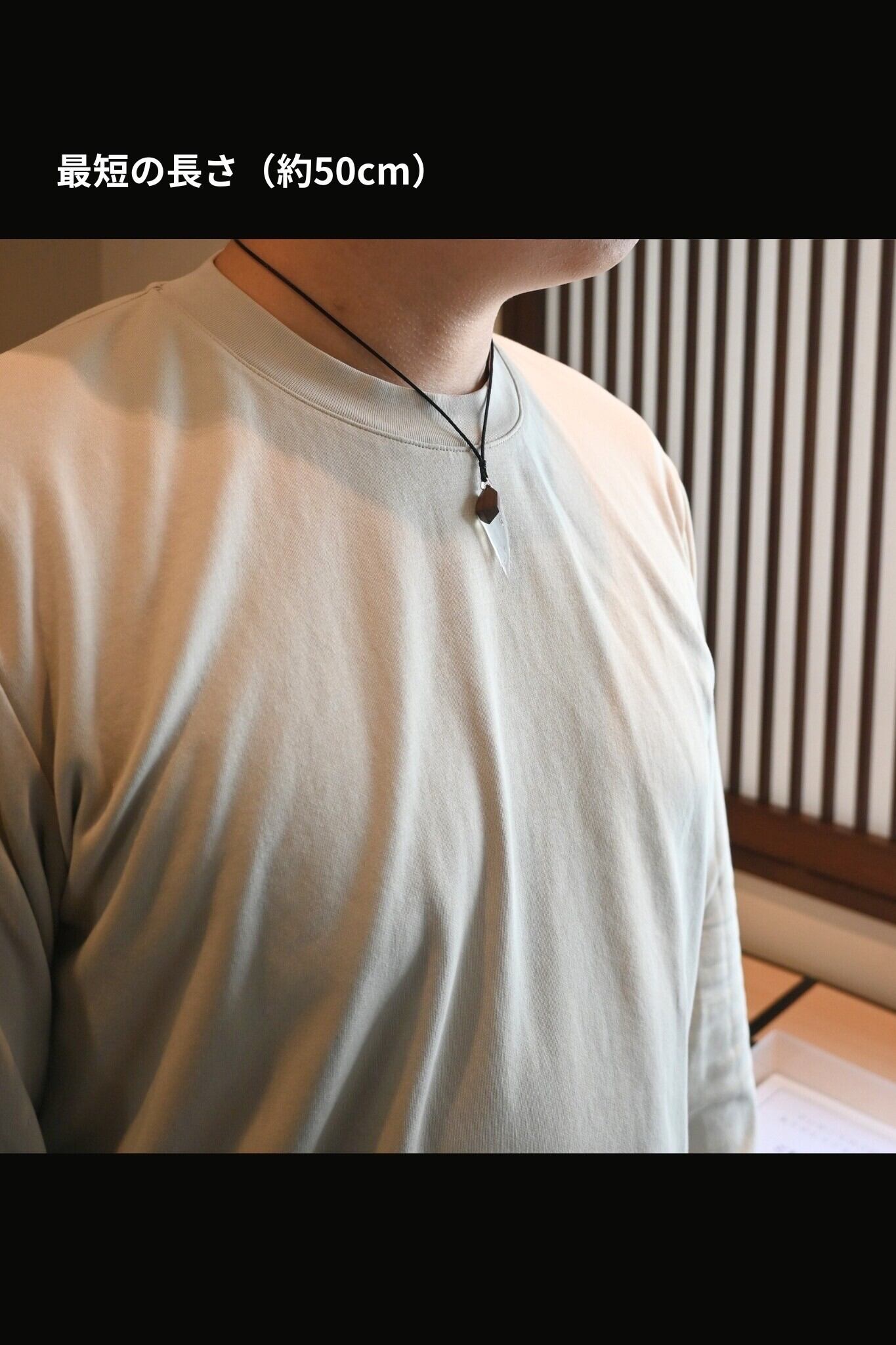 ステンレスビーズで長さを調節でき、襟のあるシャツにも合わせて使えます。