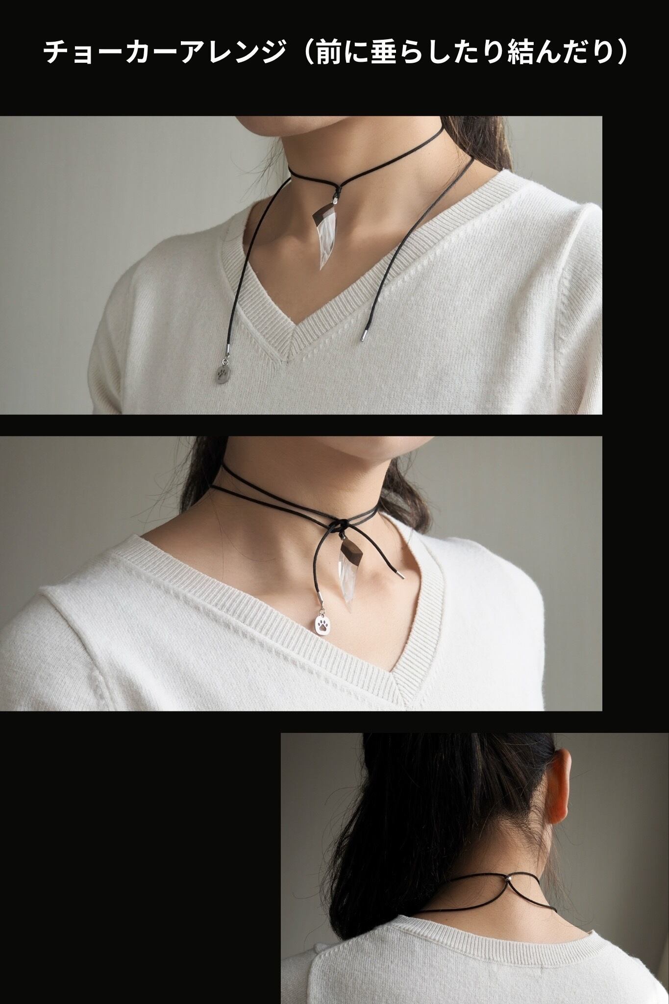長さが80cmあり、長めにも、チョーカーのように短くもできます。