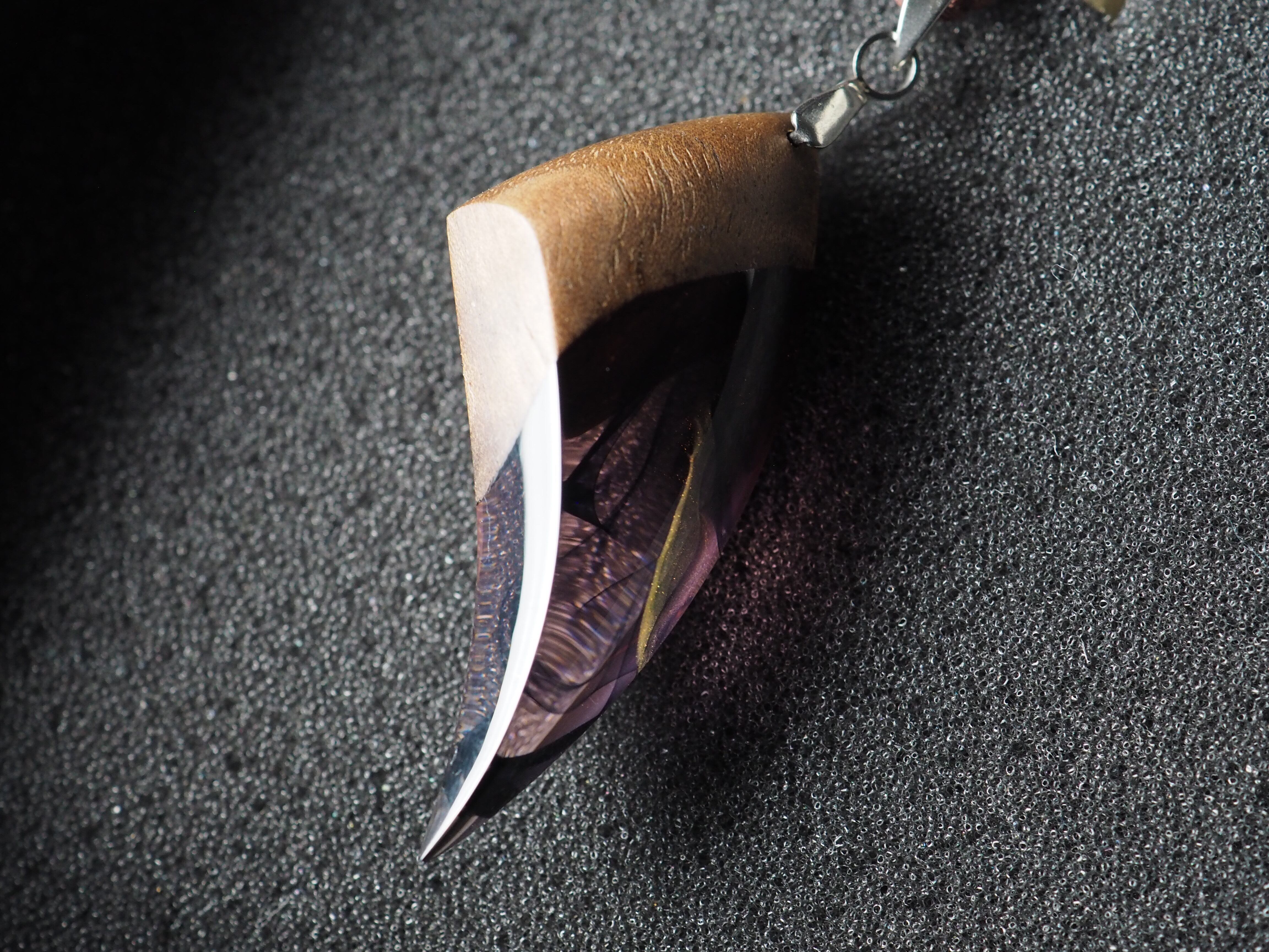 木材に染み込んだレジン液も硬化しており、使用時に滲み出て衣服を汚したり、肌に付着する心配はありません。